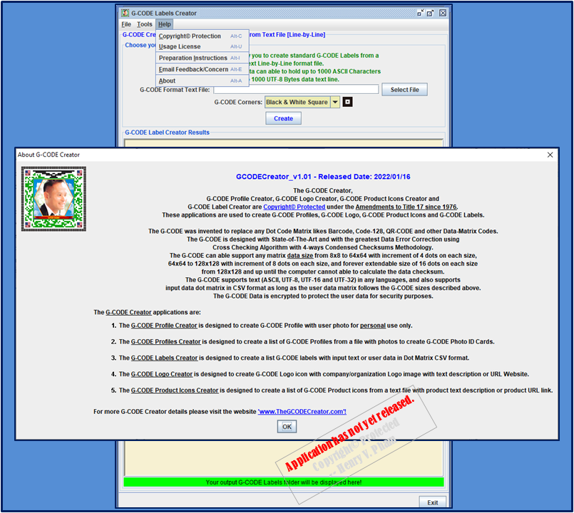 the GCODEUtility_v1.10 is provided for the users to use as a tool to generate product serial numbers and learn how to prepare the text data files before order GCODE Labels...