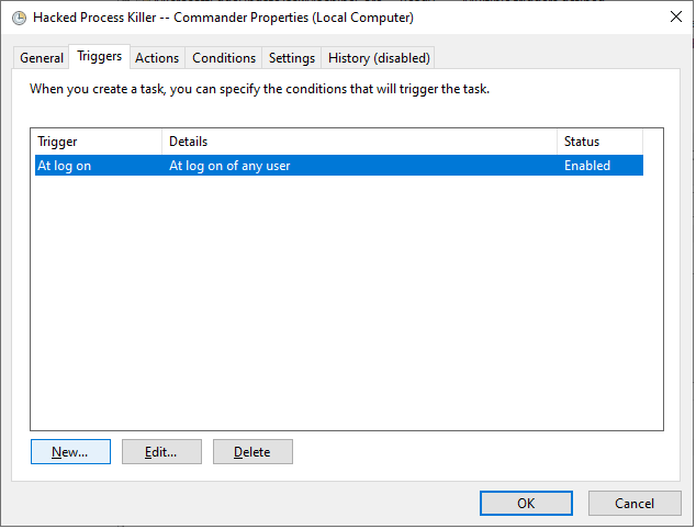 You now can reboot your Computer and logon and you will see the task 'Hacked Process Killer' is automatically triggered.