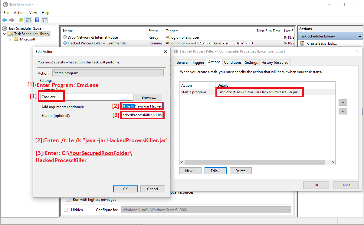 under 'Administrative Tools' as shown below. From 'Create Task...' Enter Task Name 'Hacked Process Killer -- Commander' as shown below.