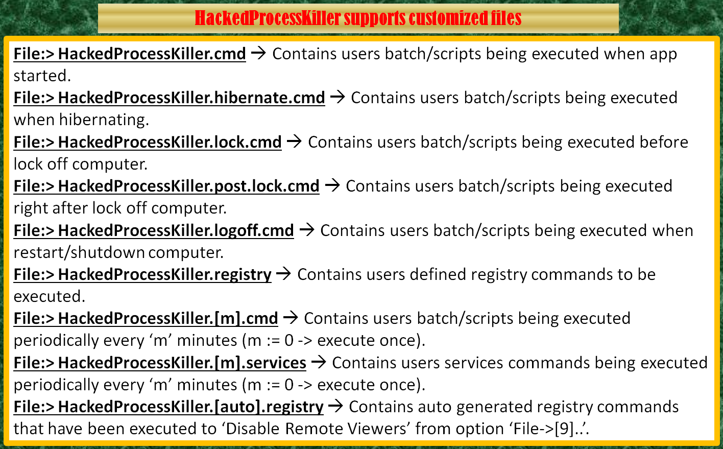 You can now able to check the top list with the preset hacked processes which will be killed if they are re-run or restarted.