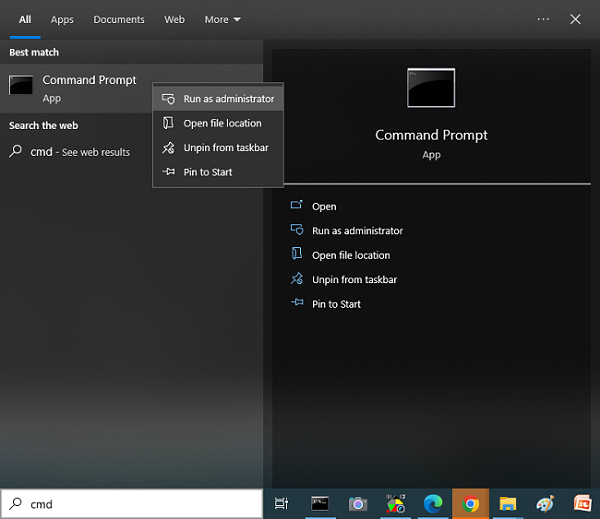 then open Windows Command Prompt under 'Adminstrator' mode by right-click and select 'Run as adminstrator' as shown below.