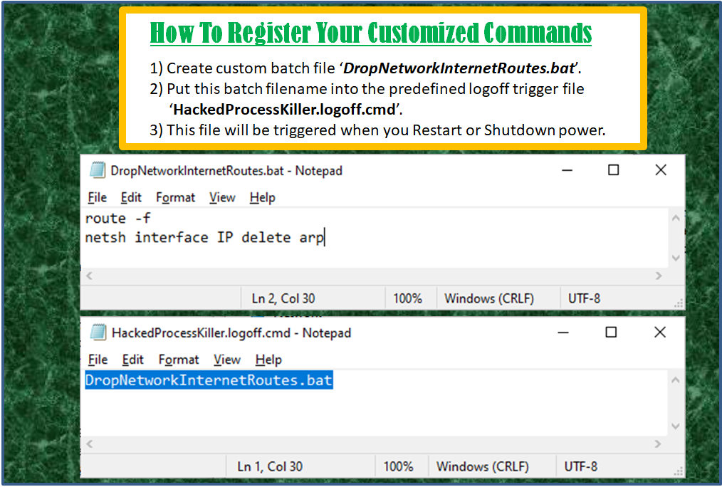 How To Register Customized Commands (Pre: Shutdown, Restart, Hibernate, Post: HackedProcessKiller startup).