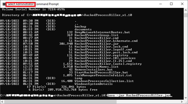 , type the 'java -jar HackedProcessKiller.jar' command as shown in the snapshot below